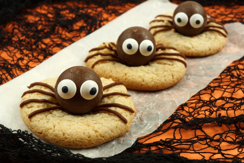 A spooky-sweet Halloween treat that’s as fun to make as it is to eat! These cookies start with soft peanut butter bases and get topped with chocolate “spiders” made from peanut butter cups or truffles. Kids will love helping with the decorating—especially adding the candy eyes!